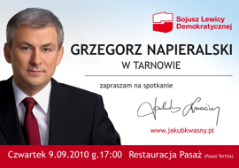 9 września Grzegorz Napieralski, lider Sojuszu Lewicy Demokratycznej będzie wizytował tereny powodziowe w naszym regionie. Do Tarnowa przybędzie około godziny 16.00, na godz. 16.30 planowana jest konferencja prasowa - na temat związany z sytuacją na terenach popowodziowych.