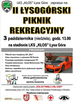 Kolejna impreza przygotowana przez LKS „Kłos” Łysa Góra odbędzie się 3 października, w niedzielę o godzinie 13.00. W programie imprezy znalazło się kilka atrakcyjnych punktów, bo organizatorom udało się pozyskać dotację z budżetu powiatu brzeskiego w ramach projektu „Rok aktywnej Łysej Góry”.