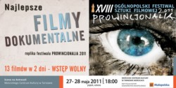 Na projekcję 13 polskich filmów dokumentalnych zaprasza w dniach 27-28 maja Centrum Sztuki Mościce. Program pokazów w Tarnowie to swoista replika festiwalu „Prowincjonalia”. Prezentowane na tym festiwalu filmy mają charakter kina oryginalnego i artystycznego, w którym dominuje świat prostych, uniwersalnych wartości, subtelność i estetyka narracji. Często nazywane są również festiwalem kina peryferyjnego i outsiderów. Celem Festiwalu jest popularyzacja polskiej sztuki filmowej oraz zaakcentowanie roli filmu w życiu społecznym.