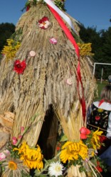 Harmonogram świętowania był taki jak to zazwyczaj od lat się dzieje. Najpierw podczas mszy świętej dziękowano wspólnie za tegoroczne plony, a następnie sceną zawładnęły dożynkowe obrzędy. Wójt Grzegorz Brach z rąk starostów dożynek odebrał chleb upieczony z mąki pochodzącej z tegorocznych zbiorów, którym z kolei dzielił się z mieszkańcami. Delegacje dożynkowe prezentowały na estradzie nie tylko wieńca, ale także okolicznościowe przyśpiewki.