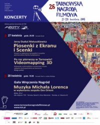Dobiegają końca projekcje konkursowa filmów walczących o laur podczas Tarnowskiej Nagrody Filmowej. Ale to jeszcze nie ostatnia odsłona Festiwalu. 27 kwietnia na Rynku zabrzmią najpiękniejsze melodie z polskich filmów i seriali uświetnione prezentacją videomappingu 3D, a dzień później w tarnowskim teatrze uroczysta gala zakończy imprezę, także w towarzystwie muzyki filmowej.