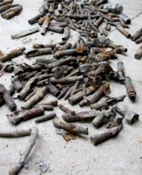U Kazimierza Mleczki na podwórku na betonowym placu leży natomiast kilkadziesiąt sztuk amunicji .