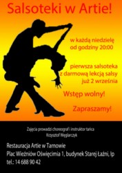 2 września, w restauracji Artie w Tarnowie odbędzie się pierwsza salsoteka, czyli impreza taneczna pełna latynoskich brzmień. Salsoteki w Artie, będą rozgrzewać tarnowian w każdą niedzielę od godziny 20.00.