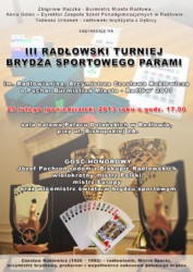 25 lutego o godzinie 17.00 rozegrany zostanie III Radłowski Turniej Brydża Sportowego Parami im. Radłowianina, Arcymistrza Czesława Kuklewicza o Puchar Burmistrza Miasta - Radłów‘ 2013. Miejscem rozgrywek będzie sala balowa pałacu Dolańskich w Radłowie.