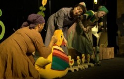 Fabuła według opowiadania Hansa Christiana Andersena okraszona jest skocznymi, wesołymi piosenkami, poetyckie obrazy przenikają się z nasączonymi humorem scenkami rodzajowymi. Ręcznie zdobiona i malowana, drewniana scenografia autorstwa Barbary Wójcik-Wiktorowicz wykorzystuje tradycyjne wzornictwo i koresponduje z motywami ludowymi tworząc wielobarwny świat ludzi i zwierząt.