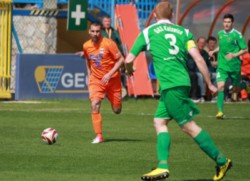 Zawodnik Termaliki po indywidualnej akcji uderzył na bramkę gości, piłka odbiła się od poprzeczki, od murawy i wpadła do siatki.