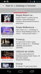 Od kilku dni repertuar teatru w Tarnowie można przeglądać również na smartfonach z systemem Android. To kolejny element systematycznie rozwijanych kanałów informacyjnych tarnowskiego teatru. Tym samym tarnowski teatr jest jednym z niewielu teatrów w Polsce, które udostępniły takie rozwiązanie swoim widzom.